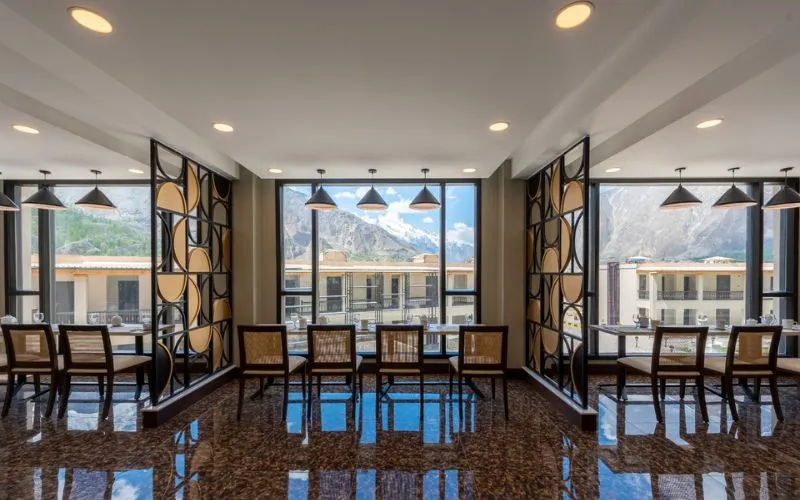 The hotel provides versatile event spaces for social or corporate functions. The pillarless banquet hall accommodates up to 150 guests, with two boardrooms for more intimate meetings. Catering and audio-visual equipment are available to ensure your event’s success. There is also a fully equipped business center if you need to get work done during your stay. So, if you want to book a corporate tour to Hunza Valley, the best option is to stay here for the ultimate experience.