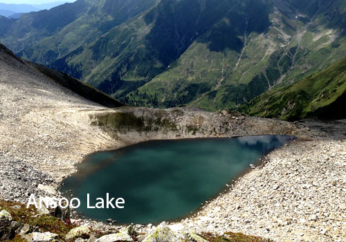 Ansu Lake is the highest lake in the Himalayas. This famous teardrop-shaped lake is located near Malika Parbat in Kaghan. Ansu Lake is about 13,927 meters high and was discovered by PAF pilots in 1993. The place is very cold and can only be reached by jeep in summer.