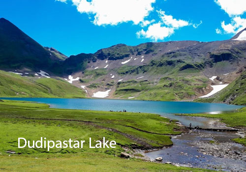 Dudipatsar Lake is known as White Mountain Lake because snow-capped mountains surround it. The stunning Queen of the Lake is located on the north side of Kaghan. Situated at an altitude of 12,500 feet above sea level, it is home to various creatures. Dudipatsar Lake is a beautiful landscape with turquoise waters, green valleys, and snow-capped peaks.